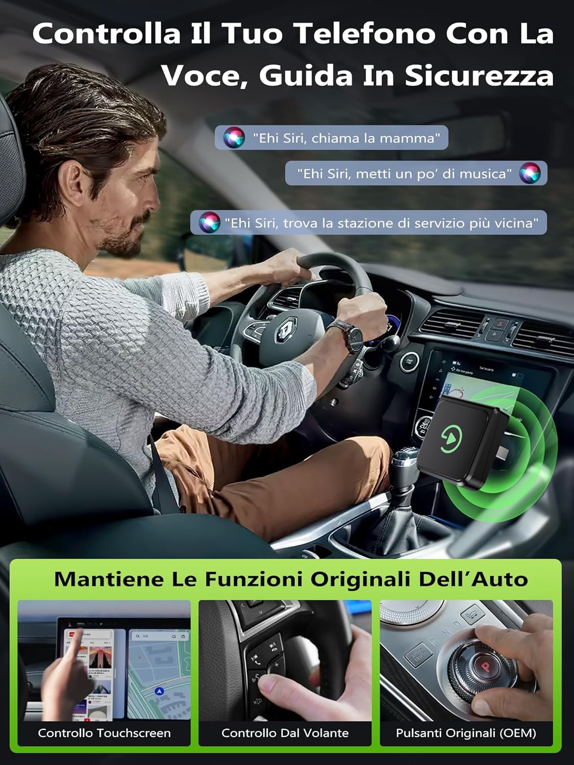 Plug & Play and Secure Fit: Simple plug-and-play setup with automatic Wi-Fi connection after Bluetooth pairing. This CarPlay wireless adapter is compatible with Siri for hands-free operation—allowing you to stay focused on the road. It maintains original in-car sound quality for calls, navigation, and music. Built-in protection helps prevent overcurrent, overheating, or accidental disconnection during extended use.